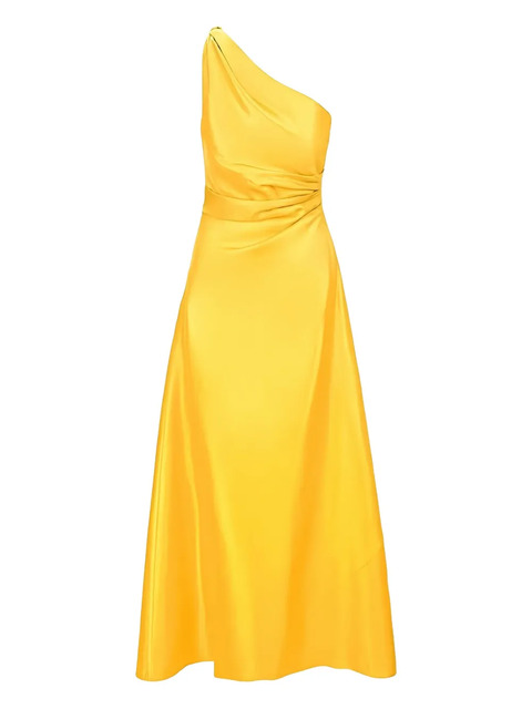 yellow one-shoulder design gathered detail sleeveless A-line shape