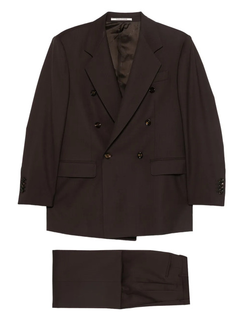 brown double-breasted button fastening notched lapels front flap pockets long sleeves