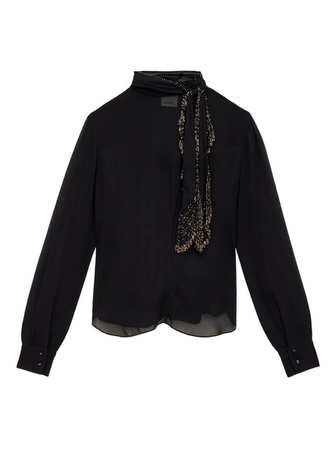 black beaded detail tie fastening long sleeves buttoned cuffs sheer finish