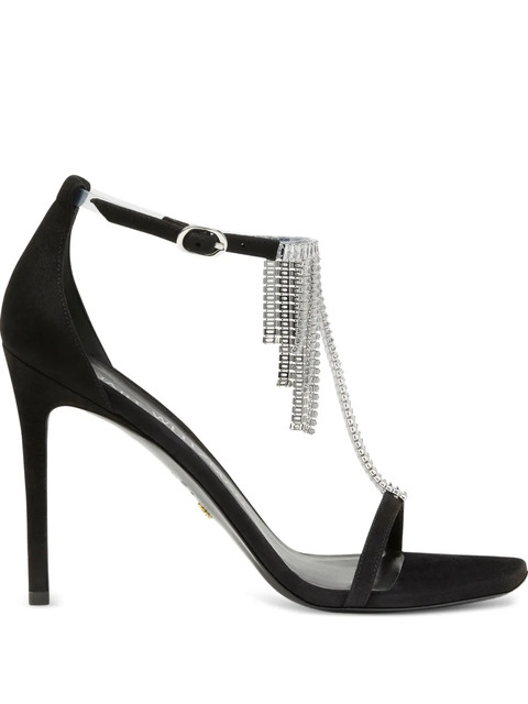black crystal embellishments T-strap 100mm stiletto heel adjustable ankle strap