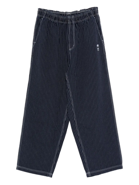 blue striped elasticated waistband logo patch seam detailing