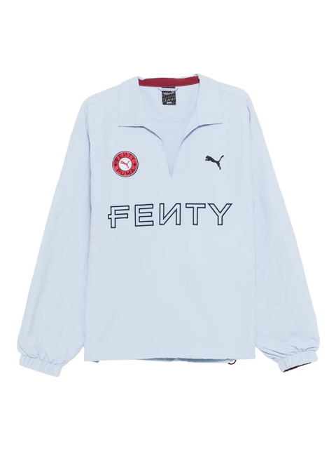 blue logo appliqué V-neck long sleeves spread collar elasticated cuffs