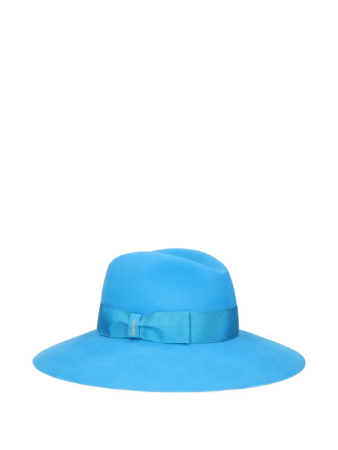 blue brushed felt wide brim grosgrain ribbon bow detail flat crown