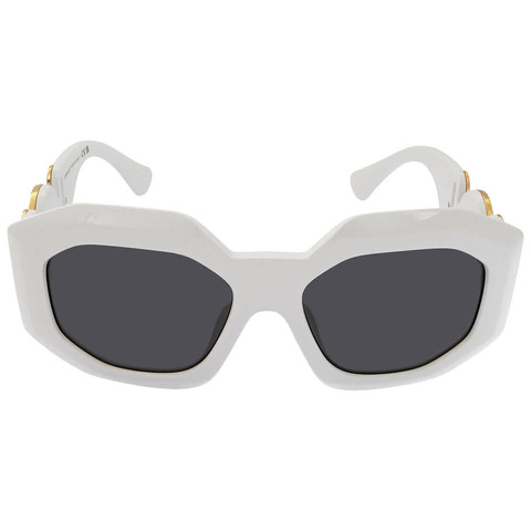 Versace Sunglasses. Series number: VE4424U. Color code: 314/87. Shape: Irregular. Lens Width: 56 mm. Lens Bridge: 18 mm. Arm Length: 145 mm. 100% UV protection. Non-Polarized. Frame Material: Plastic. Frame Color: White. Lenses Type: Dark Gray. Rim Style: Full-Rim. UPC/EAN code: 8056597690119. Versace Dark Gray Irregular Ladies Sunglasses VE4424U 314/87 56.<br/><br/>Manufacturer's Packaging Included. Packaging Size And Color May Vary.