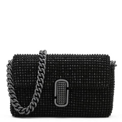 Marc Jacobs Ladies Shoulder Bag. SKU: H912M06RE22-001. Color: Black. Size: 7.5in L x 2in D x 1in H. Marc Jacobs The Rhinestone J Marc Mini Shoulder Bag. The J Marc Mini Shoulder Bag is crafted from dazzling rhinestone chainmail and features a sleek magnetic closure. It comes with a chic shoulder chain strap and includes three interior card slots for added functionality.
