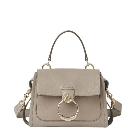 Chloe Ladies Top Handle Bag. SKU: CHC22SS143G3323W. Color: Motty Grey. Crafted from grained and shiny calfskin, the Tess Mini Bag balances elegance and practicality in a compact silhouette. Featuring Chloes signature gold-tone O ring, a magnetic flap closure, and multiple pockets, its perfect for everyday use. Double strapsshort and longoffer versatile carry options, while the bold leather band and mixed-metal hooks add refined detail.Dimensions: 9.3 W x 5.9 H x 4.1 D.Strap drop: 18.722.Material: Calfskin with linen lining.Carry: Hand, shoulder, or crossbody. Made in Italy.