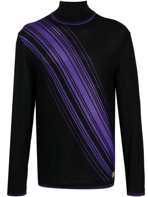 black/purple wool blend diagonal stripe pattern intarsia-knit logo roll neck long sleeves