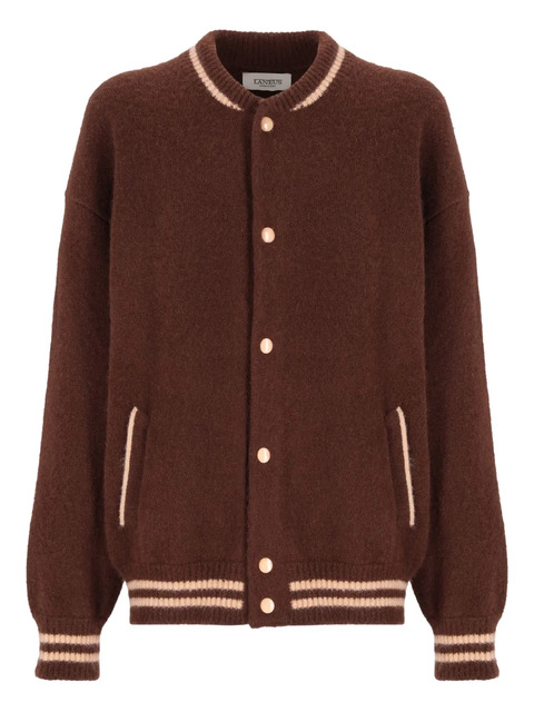 chocolate striped trim button fastening long sleeves welt pockets ribbed hem