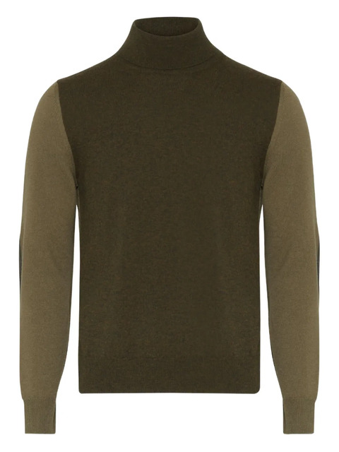 olive green wool turtleneck neckline long sleeves ribbed cuffs