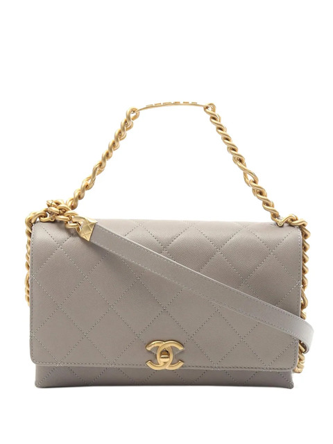 quilted caviar leather body chain link handle chain link shoulder strap with leather guard front flap with a twist lock closure exterior back slip pocket interior zip and slip pockets gray Serial Number: LT30PU2H This item has no inclusions. Condition: EXCELLENT. This previously owned item is in near-perfect condition with no signs of damage or use. Due to the exclusivity of this item and its limited availability, processing and delivery might take longer than usual. Please refer to the photos on this product page for a detailed view of the item, including any damages declared.