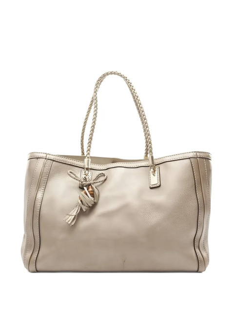 2000s gold-tone braided top handles bamboo tassel internal slip pocket zip top fastening leather