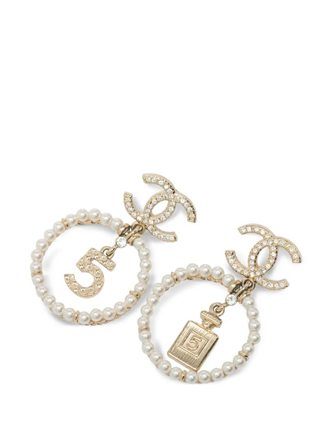 CHANEL Pre-Owned 2020 Gold Plated CC Crystal Faux Pearl and No 5 Perfume Bottle Drop Push Back Earrings costume earrings - 32421022 (LPN369335)