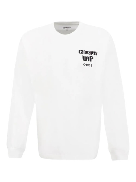 white long sleeves graphic print crew neck