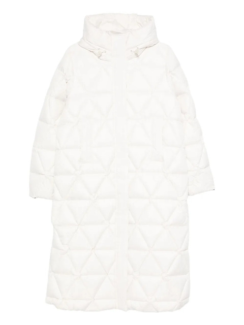 white concealed front zip fastening feather down drawstring hood