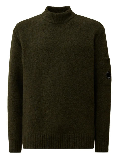 green mock neck signature Lens detail long sleeves ribbed hem ribbed cuffs C.P. Company suggests removing any detachable accessories before washing.