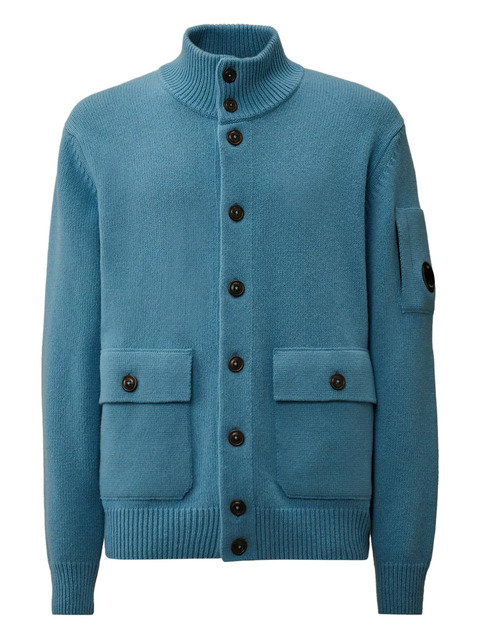 blue wool blend button fastening flap pockets long sleeves signature Lens detail high neck C.P. Company suggests removing any detachable accessories before washing.