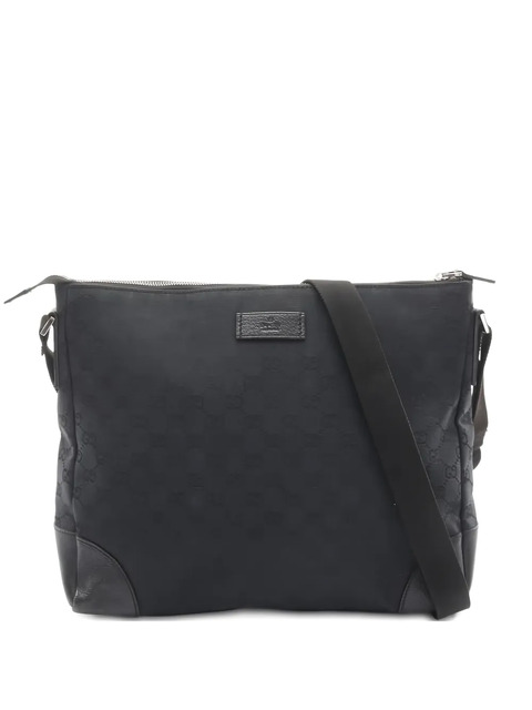 2000s black GG pattern leather trims adjustable shoulder strap zip top fastening internal zip pocket