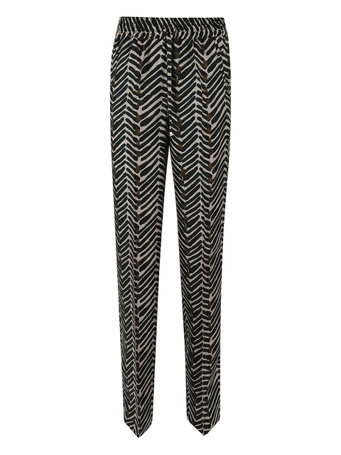 black all-over abstract print elasticated waistband drawstring fastening two side slit pockets straight leg