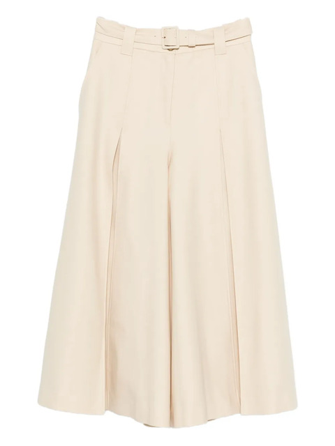 beige belted waist front buckle fastening pleat detailing wide leg wool blend