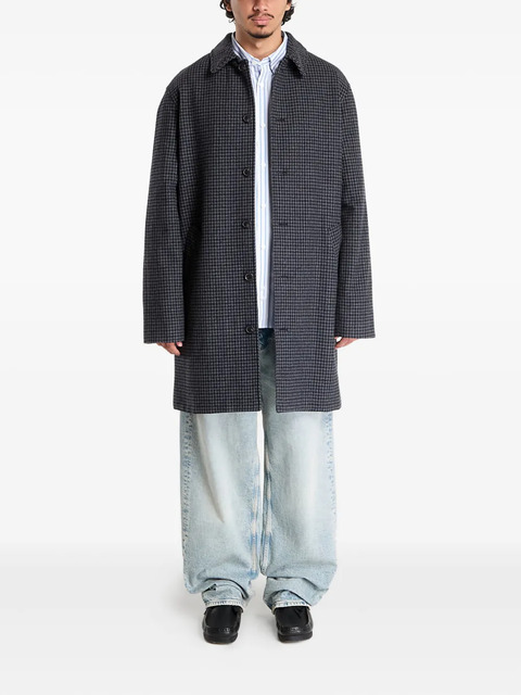 grey check pattern button fastening point collar long sleeves side welt pockets