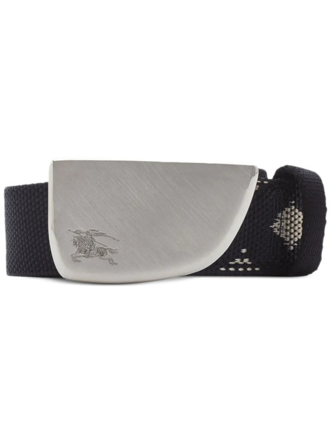 black calf leather palladium-plated hardware slide-buckle fastening signature Equestrian Knight motif adjustable fit