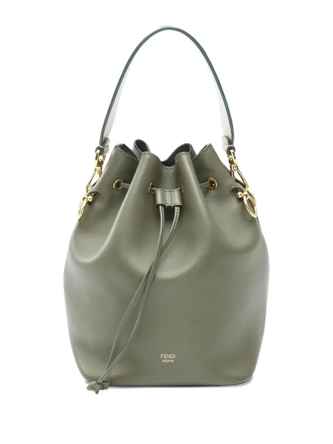 2010s khaki green flower embroidery strap drawstring fastening top handle gold-tone hardware leather Condition: GOOD. This previously owned and used item is in good condition with minimal signs of use. This may include fading of material or plating and scratches.