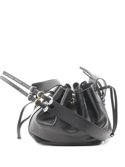 2020s black leather top handle drawstring fastening shoulder strap gold-tone hardware