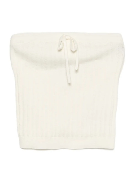 white strapless ribbed hem cable knit