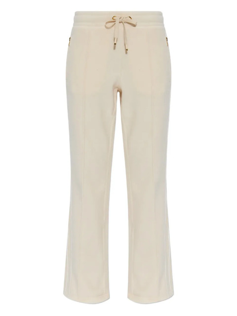 cream side zip pockets drawstring fastening gold-tone hardware piped trim