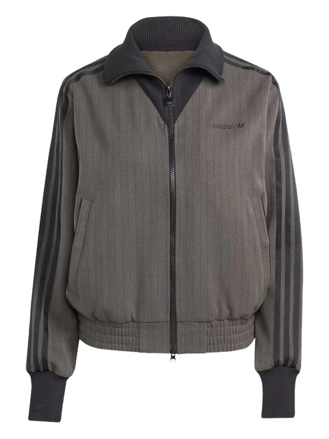 grey striped pattern zip fastening ribbed hem ribbed cuffs