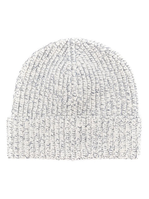 white/navy blue cashmere ribbed knit mélange effect turn-up brim pull-on style