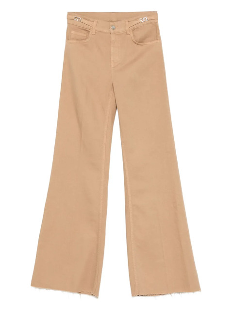 beige stretch-cotton raw-cut hem belt loops classic five pockets