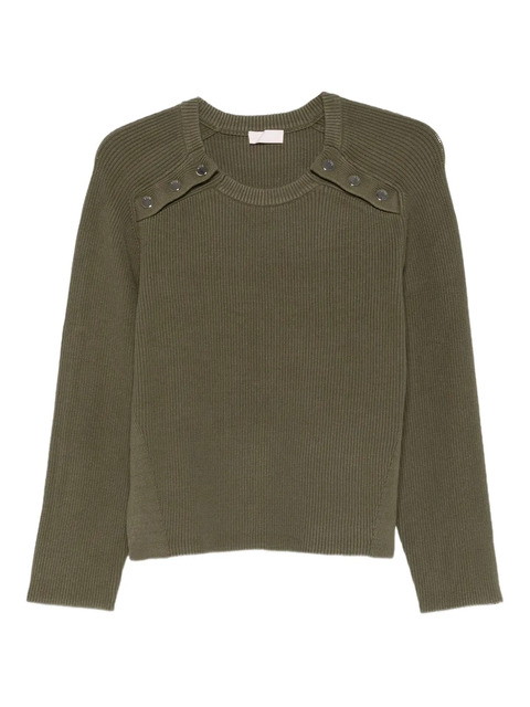 olive green ribbed knit round neck long sleeves press-stud fastening