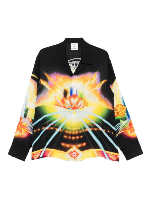black/multicolor silk all-over graphic print front concealed fastening long sleeves