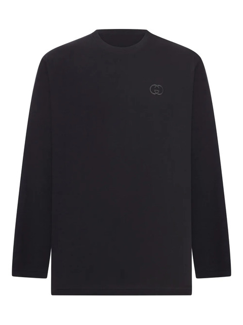 black cotton embroidered Interlocking G logo round neck long sleeves straight hem
