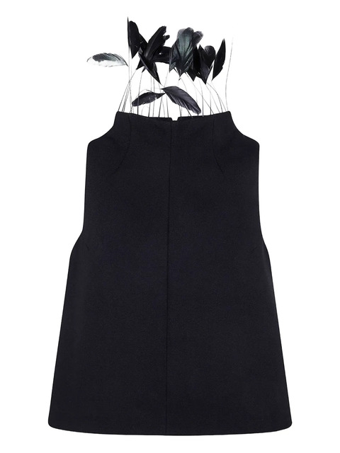 black feather detail zip fastening high neck sleeveless tonal stitching
