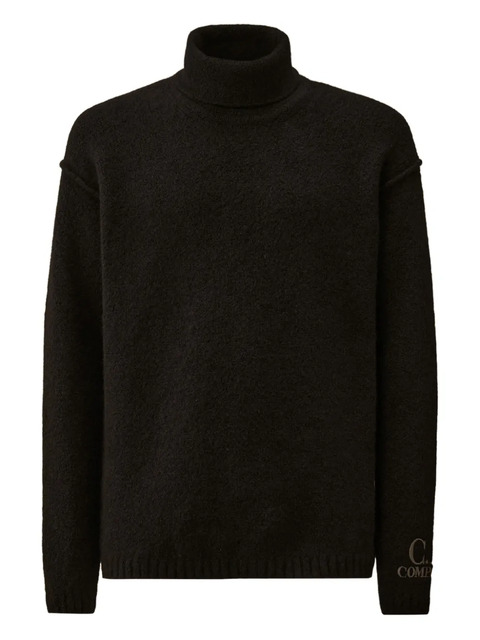 black roll neck long sleeves logo embroidery knitted construction