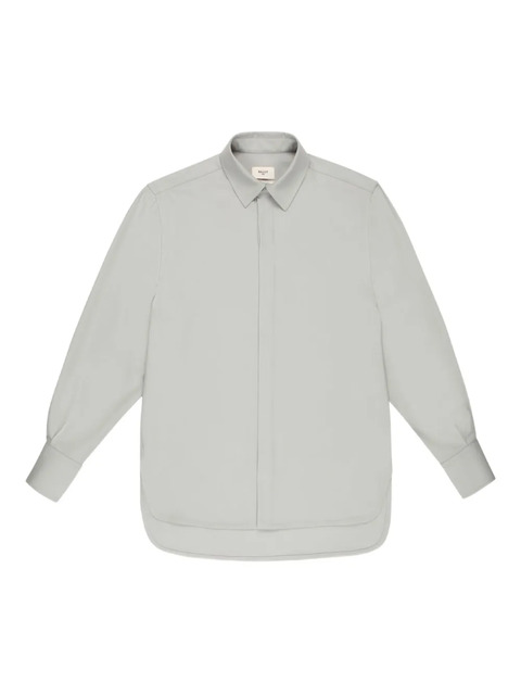 light grey long sleeves buttoned cuffs curved hem buttoned front point collar