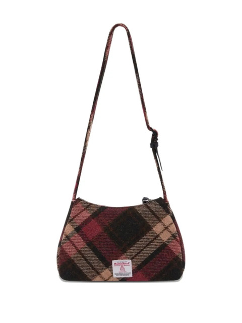 red/multicolour check pattern signature Orb logo plaque adjustable shoulder strap zip fastening