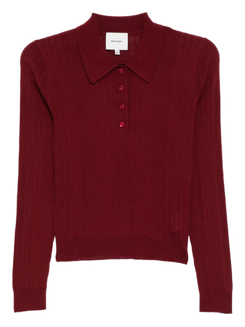 burgundy front button fastening long sleeves ribbed cuffs and hem