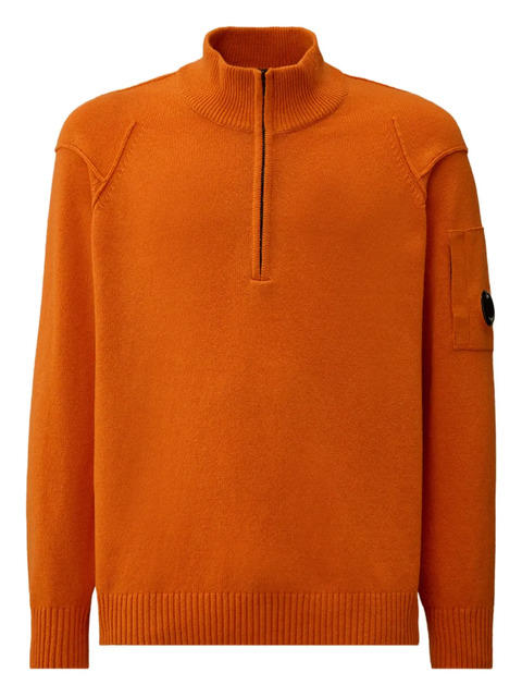 orange wool-blend half-zip fastening high neck long sleeves signature Lens detail C.P. Company suggests removing any detachable accessories before washing.