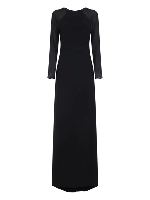 black long sleeves sheer detail round neck zip fastening