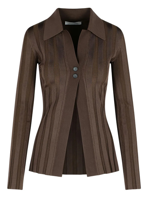 brown ribbed pattern two-button closure shirt collar