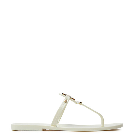 Tory Burch Ladies Sandals. SKU: 51148678-104. Color: Ivory / Gold. Tory Burch Womens Mini Miller Jelly Thong Sandals. Jelly thong sandals made from waterproof jelly material, featuring gold-toned metal logo embellishment for a touch of shine. 100% PVC. <br/><br/><b>Please visit the brand website for sizing information.</b>