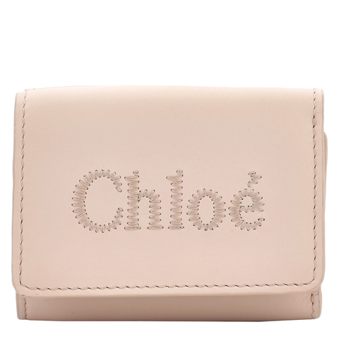 Chloe Ladies Wallets. SKU: CHC23AP875I10. Barcode: 7614027006520. Color: Cement Pink. Chloe Ladies Cement Pink Trifold Leather Wallet. Crafted from smooth calfskin, this wallet features a press stud pocket, a banknote compartment, a button pocket and tone-on-tone front lettering logo.
