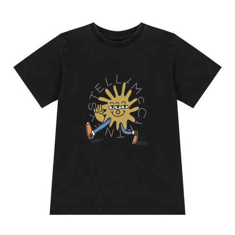 Stella McCartney Unisex Tops. Fashion category: T-Shirts & Henleys. SKU: TV8Q01-Z0434-930. Color: Black. Stella Mccartney Black Printed Cotton T-Shirt. Crafted from soft organic cotton jersey, this piece features the brand's logo and an adorable graphic print on the front. Designed with a classic crew neckline and short sleeves for everyday comfort and style. 100% Organic Cotton.