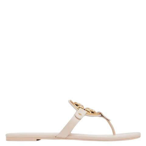 Tory Burch Ladies Sandals. SKU: 136593-101. Color: New Cream / Gold. Tory Burch Miller Soft Metal Logo Sandals. This iconic sandal now features an ultra-soft memory foam sole for lasting comfort and support. With a refined silhouette and an extra-padded footbed, it offers a minimalist design with clean lines and a seamless insole. The original laser-cut logo, with hand-painted edges, is topped with a metal overlay for added elegance. Expertly crafted from supple, full-grain leather, this sandal retains its beautiful finish over time. 100% Leather. <br/><br/><b>Please visit the brand website for sizing information.</b>