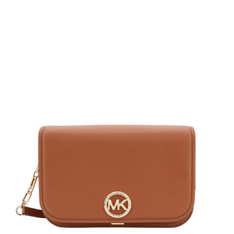 Michael Kors Ladies Messenger. SKU: 30S4GD8M2L-230. Color: Luggage. Size: 15.5 W X 6.25 H X 3 D. Michael Kors Medium Delancey Leather Messenger Bag. This Delancey bag features a logo brooch, a push-lock top flap, an adjustable shoulder strap, an interior zippered pocket, brand logo interior engraving, and logo jacquard lining. 100% Calf Leather, 100% Polyester. Made in Indonesia.