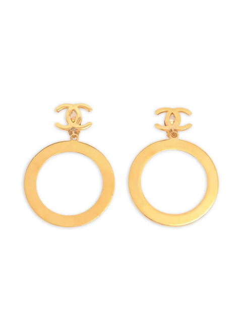 1970-1990 gold-tone signature interlocking CC logo hoop design clip-on fastening These earrings come as a pair. Condition: GOOD. This previously owned and used item is in good condition with minimal signs of use. This may include fading of material or plating and scratches.
