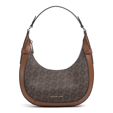 Michael Kors Ladies Crossbody. SKU: 30H3GIMM1B-227. Barcode: 196237352644. Color: Brn/Luggage. Size: 8.5W X 4.75H X 2.25D. Michael Kors Mila Small Empire Signature Logo Shoulder Bag. Crafted from durable canvas adorned with our luxurious Empire Signature print, the Mila shoulder bag features a sleek curved silhouette and a signature padlock charm for a touch of elegance. The braided chain-link strap offers effortless, on-the-go glamour with an 18.5 drop. Designed for both style and function, it includes a back slip pocket for easy access, a front slip pocket, and three interior card slots, all lined in 100% polyester. Finished with a secure snap closure. 80% coated canvas/16% polyester/4% cotton.